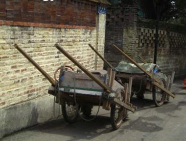萧山也叫“钢丝车”,那是靠近钱塘江南岸一带,受杭城的影响。稍远,不同了,叫“板车”,叫“人力车”。城东的临平也这么叫,城西的袁浦却叫“双轮车”。周华诚的《没人知道你在寻找什么》,有“架子车”一说,我相信他写的就是钢丝车:两轮子,木板车身,两条拉杠。华诚是常山人,叫法上相差远了一点。