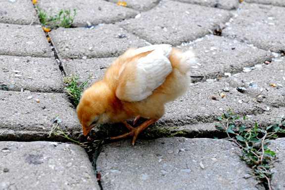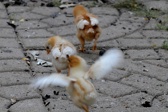 鸡们茁壮成长,我到中国去旅行。岂料我在国内的时候,一个星期六的晚上,家里的小鸡们惨遭野兽袭击,死了二十几只,只留下了三只。