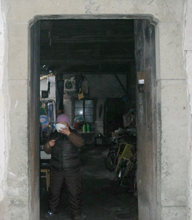 1号正门一整条青石上,突兀一个拳头大的“拴马孔”。雕凿的艰巨,马绳的勒痕,“上马石”的配置,都见出宅主的显赫。西侧胡雪岩故居也有“拴马孔”,只是实芯的装饰。1号正门的东侧有“朱界振宜堂”墙碑,但方志查无此人。东、西大院的济济住户,对原宅主也众说纷纭。
